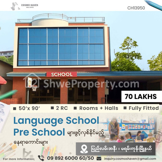 🈵🈵🈵 Language Centre,🏫Pre - School 🏨Training Centreများကို ရန်ကုန်မြိုရှိ မြိုနယ်စုံနေရာကောင်းများတွင် ဖွင့်လှစ်ချင်တဲ့လူကြီးမင်းများအတွက် သွားလာရလွယ်ကူပြီး၊ လူစည်ကားသည့် နေရာများတွင်ဖြစ်လို လုပ်ငန်းရှင်လူကြီးမင်းတို့ အချိန်မကုန်ဘဲရွှေးချယ်နိုင်စေရန် Cosmo Haven မှတစုတစည်းတည်းဖော်ပြပေးလိုက်ပါတယ်ခင်ဗျာ။