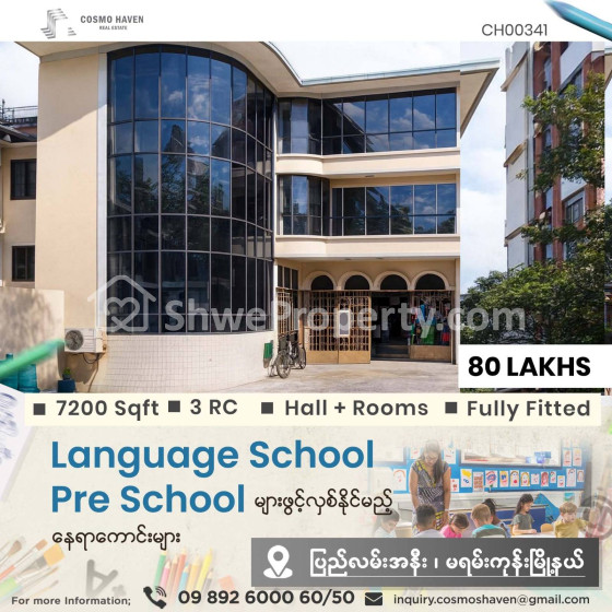🈵🈵🈵 Language Centre,🏫Pre - School 🏨Training Centreများကို ရန်ကုန်မြိုရှိ မြိုနယ်စုံနေရာကောင်းများတွင် ဖွင့်လှစ်ချင်တဲ့လူကြီးမင်းများအတွက် သွားလာရလွယ်ကူပြီး၊ လူစည်ကားသည့် နေရာများတွင်ဖြစ်လို လုပ်ငန်းရှင်လူကြီးမင်းတို့ အချိန်မကုန်ဘဲရွှေးချယ်နိုင်စေရန် Cosmo Haven မှတစုတစည်းတည်းဖော်ပြပေးလိုက်ပါတယ်ခင်ဗျာ။
