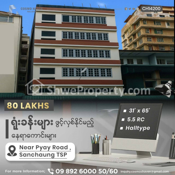 Property Name : ရုံးခန်းများဖွင့်လှစ်နိုင်ရန်အတွက်နေရာကောင်းများ/Office for Rent Sanchaung Township in Yangon