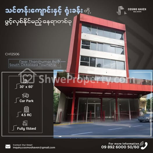 တောင်ဥက္ကလာပမြို့နယ် မိန်းလမ်မအနီးမှာတည်ရှိတာကြောင့် သွားလာရလွယ်ကူအဆင်ပြေတဲ့နေရာကောင်းတစ်ခုဖြစ်ပြီး 🖥Showroom ,🈵Language School, 👩🏻💻Office ၊💅🏻Beauty Salon & Clinic စတဲ့လုပ်ငန်းများလုပ်ကိုင်ရန် သင့်တော်သောနေရာကောင်းတစ်ခုဖြစ်တဲ့အပြင် ♻ Hall type ပုံစံဖွဲစည်းထားသောကြောင့် Decoration များကိုစိတ်ကြိုက်ပြင်ဆင်နိုင်တဲ့ Building တစ်ခုဖြစ်လို လုပ်ငန်းရှင်လူကြီးမင်းများအတွက် Cosmo Haven မှ ရွှေးချယ်ဖော်ပြပေးလိုက်ပါတယ်ခင်ဗျာ။🧧🧧🧧⏳🪂⬆🆙