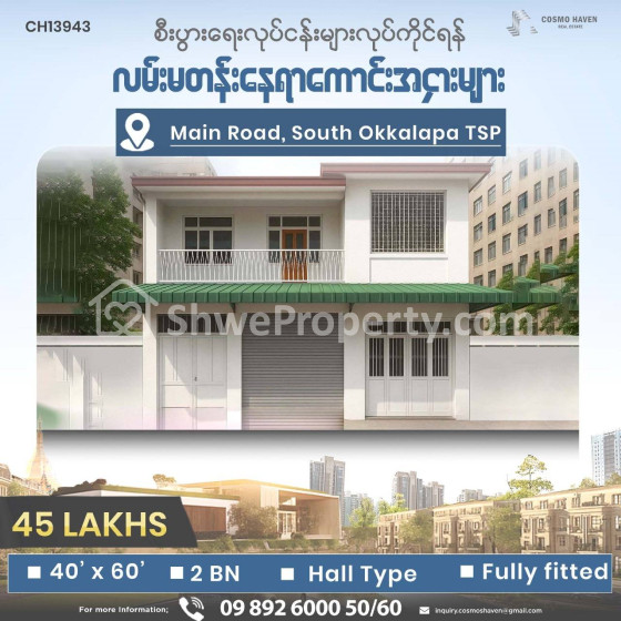 လူကြီးမင်းတို့၏လုပ်ငန်းနှင့်ကိုက်ညီမှုရှိသော အိမ်ခြံမြေနေရာအချက်အလက်များကို အချိန်ခနအတွင်းဝင်ရောက်ရွေးချယ်ရှာဖွေနိုင်ပြီး အကောင်းမွန်ဆုံး ဝန်ဆောင်မှုများကိုရယူရန် Cosmo haven real estateကို ယခုဘဲဆက်သွယ်လိုက်ပါ...