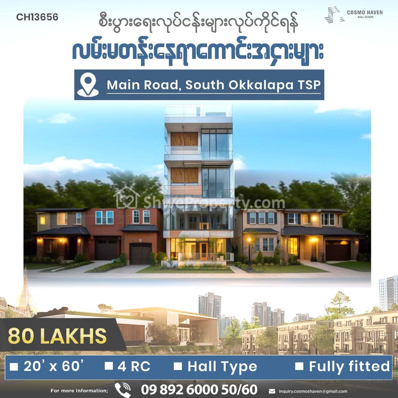 လူကြီးမင်းတို့၏လုပ်ငန်းနှင့်ကိုက်ညီမှုရှိသော အိမ်ခြံမြေနေရာအချက်အလက်များကို အချိန်ခနအတွင်းဝင်ရောက်ရွေးချယ်ရှာဖွေနိုင်ပြီး အကောင်းမွန်ဆုံး ဝန်ဆောင်မှုများကိုရယူရန် Cosmo haven real estateကို ယခုဘဲဆက်သွယ်လိုက်ပါ...