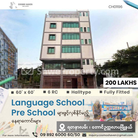 Property Name : Language Centre, Pre - School, Training Centreများဖွင့်လှစ်နိုင်မည့်နေရာကောင်းများ/Office for Rent in Yangon/09892600050,09892600060