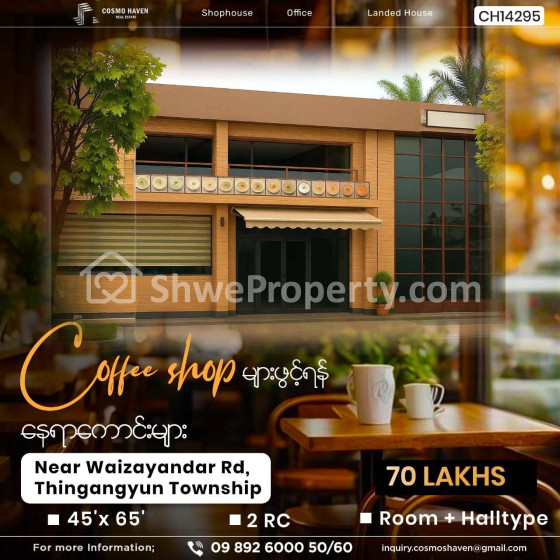 ညွှန်းရလွယ်ကူသော နေရာကောင်းများတွင် ☕Coffee Shop ၊ 🍰 Cake and Bakery Shop များကို Luxury ဆန်ဆန်ဖြင့်ဖွင့်လှစ်နိုင်စေရန် လုပ်ငန်းလိုအပ်ချက်အရ ပြင်ဆင်ဖွဲ့စည်းနိုင်သော Commercial နေရာကောင်းများကို 🕚အချိန်ကုန်သက်သာစွာ ရွေးချယ်နိုင်စေရန် Cosmo Haven Real Estate မှာ လူကြီးမင်းတို့ကို တစ်စုတစ်စည်းတည်း ရွေးချယ်ဖော်ပြပေးလိုက်ပါတယ်ရှင့်💁💁🆙️🆙️🆙️