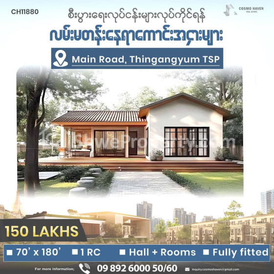 လူကြီးမင်းတို့၏လုပ်ငန်းနှင့်ကိုက်ညီမှုရှိသော အိမ်ခြံမြေနေရာအချက်အလက်များကို အချိန်ခနအတွင်းဝင်ရောက်ရွေးချယ်ရှာဖွေနိုင်ပြီး အကောင်းမွန်ဆုံး ဝန်ဆောင်မှုများကိုရယူရန် Cosmo haven real estateကို ယခုဘဲဆက်သွယ်လိုက်ပါ...