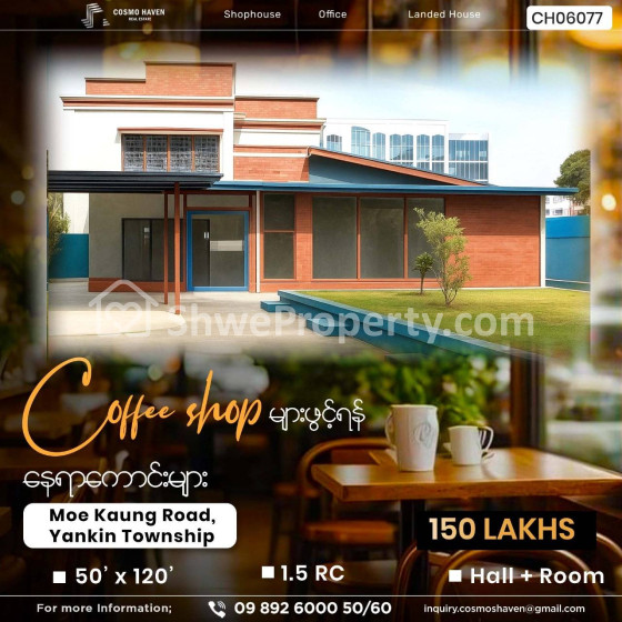 ညွှန်းရလွယ်ကူသော နေရာကောင်းများတွင် ☕Coffee Shop ၊ 🍰 Cake and Bakery Shop များကို Luxury ဆန်ဆန်ဖြင့်ဖွင့်လှစ်နိုင်စေရန် လုပ်ငန်းလိုအပ်ချက်အရ ပြင်ဆင်ဖွဲ့စည်းနိုင်သော Commercial နေရာကောင်းများကို 🕚အချိန်ကုန်သက်သာစွာ ရွေးချယ်နိုင်စေရန် Cosmo Haven Real Estate မှာ လူကြီးမင်းတို့ကို တစ်စုတစ်စည်းတည်း ရွေးချယ်ဖော်ပြပေးလိုက်ပါတယ်ရှင့်💁💁🆙️🆙️🆙️