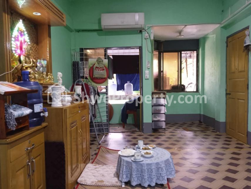 ရန်ကုန်တိုင်းဒေသကြီး လှိုင်မြို့နယ် ၄ ရပ်ကွက်၊ ဘုရင့်နောင်လမ်းမကြီး (ရွှေပိတောက်ငါးစျေး အနီး၊သီရိမဂ်လာစျေးသစ်အနီး) အေးရိပ်မွန်အိမ်ယာ တိုက်(၁) ၊ စတုတ္ထထပ် (အပေါ်ဆုံးထပ်) ရှေ့နောက် ကြွေပြားအပြည့်ကပ်အပြီး ရှေ့နောက် သံဗန်းတပ်အပြီး ထပ်ခိုးပါ အသင့်နေရုံ တိုက်ခန်း ရောင်းမည်