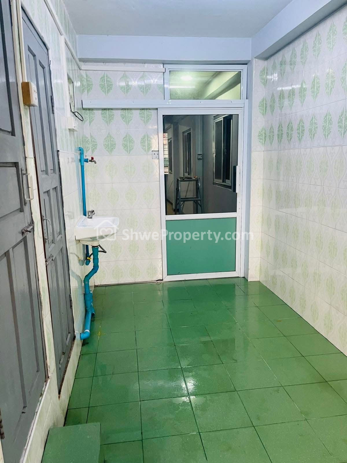 မီးဖို ရေချိုးခန်း အိမ်သာဘိုထိုင် ကြွေပြားခင်းကပ်ထား