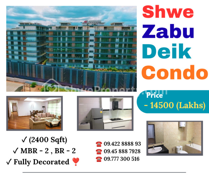 Property Name : အလုံမြို့နယ် ၊ ရွှေဇမ္ဗူဒိပ်ကွန်ဒို ၊(2400 Sqft) , For Sale