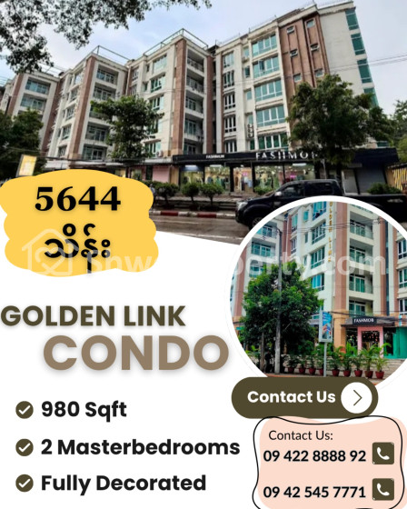 Property Name : ဗဟန်းမြို့နယ် ၊ Golden Link Condo (980 Sqft)For Sale