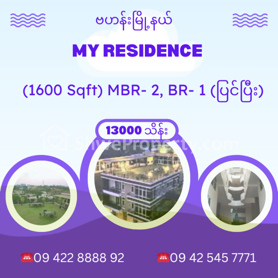 Property Name : ဗဟန်းမြို့နယ်၊My Residence (1600 Sqft)For Sale