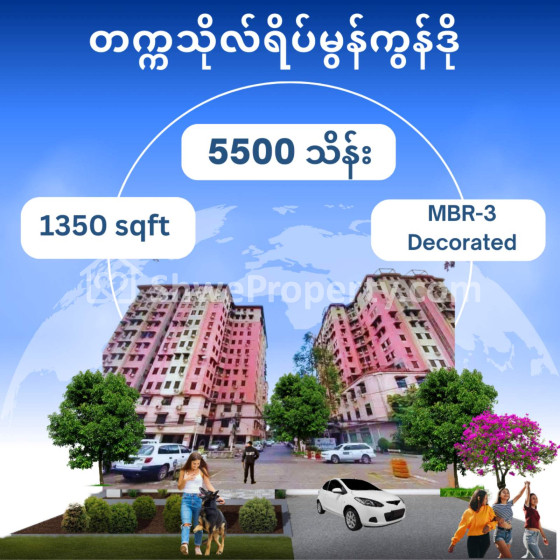 Property Name : ဗဟန်းမြို့နယ်၊တက္ကသိုလ်ရိပ်မွန် ကွန်ဒို (1350sqft)၊For Sale