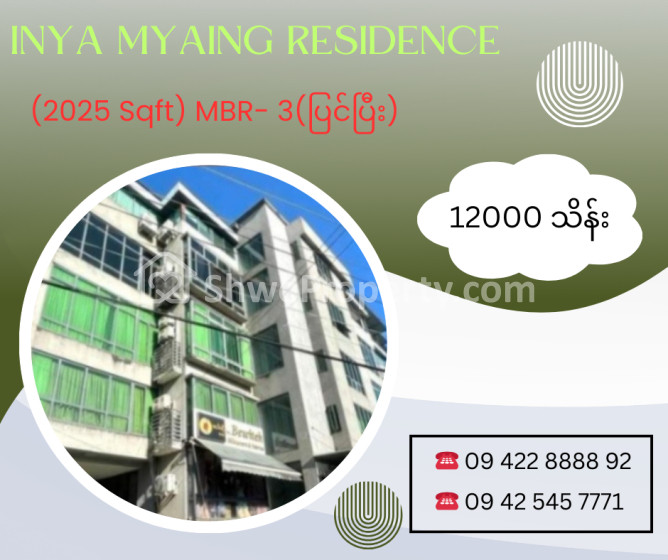 Property Name : ဗဟန်းမြို့နယ်၊Inya Myaing Residence (2025 Sqft)For Sale
