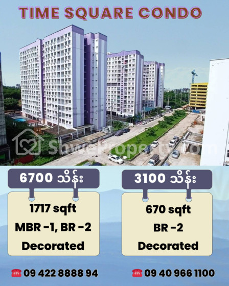 Property Name : ဗိုလ်တထောင်မြို့နယ်၊Time Square Condo (670sqft)၊For Sale