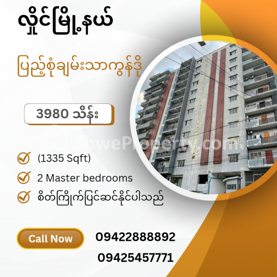 Property Name : လှိုင်မြို့နယ်၊ပြည့်စုံချမ်းသာကွန်ဒို(1335 Sqft)For Sale