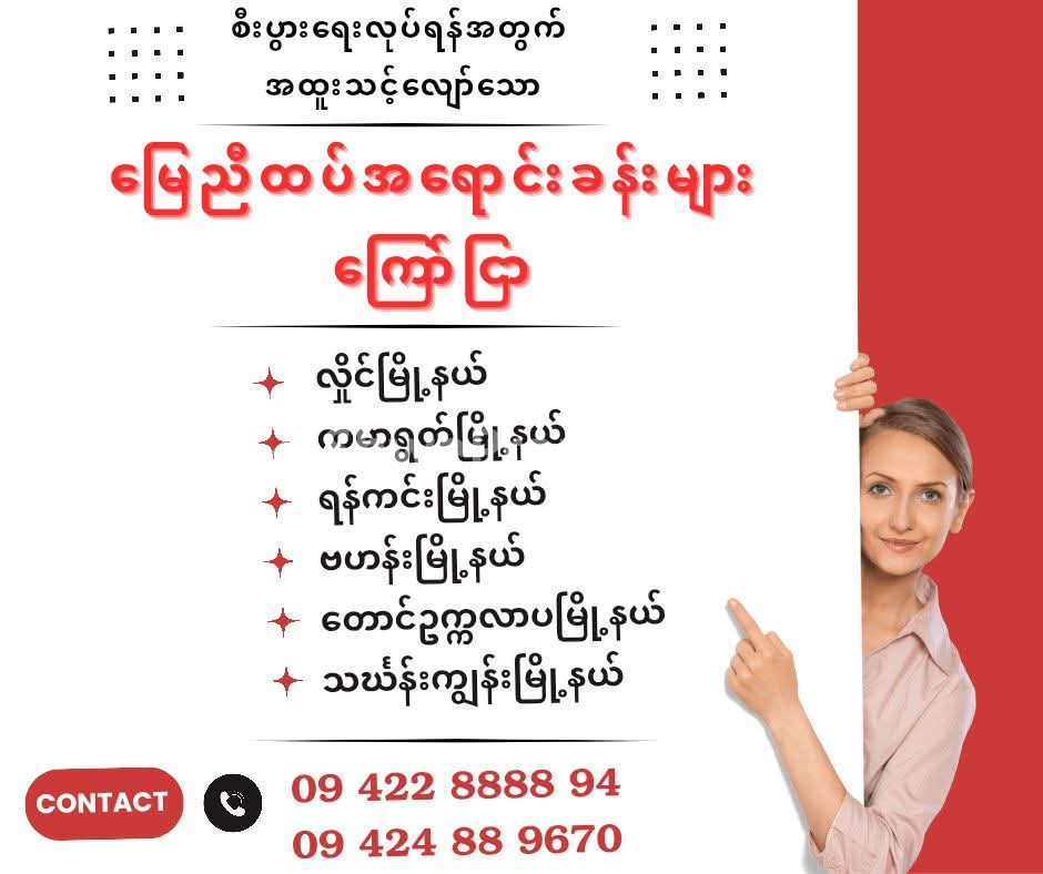 🌠လှိုင်မြို့နယ်၊ ကမာရွတ်မြို့နယ် ၊ရန်ကင်းမြို့နယ် ၊ ဗဟန်းမြို့နယ် ၊ တောင်ဥက္ကလာပမြို့နယ်နှင့် သင်္ဃန်းကျွန်းမြို့နယ်ရှိမြေညီအရောင်းခန်းများ🌠