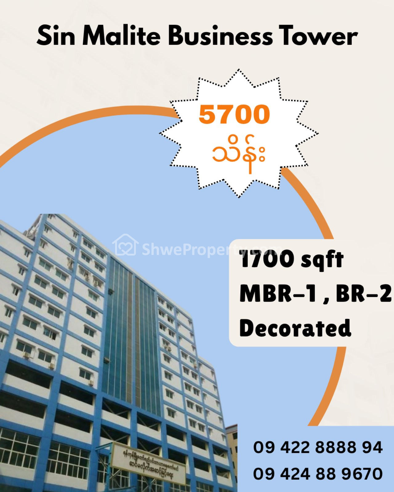 Property Name : ကမာရွတ်မြို့နယ်၊Sin Malite Business Tower (1700Sqft)၊For Sale