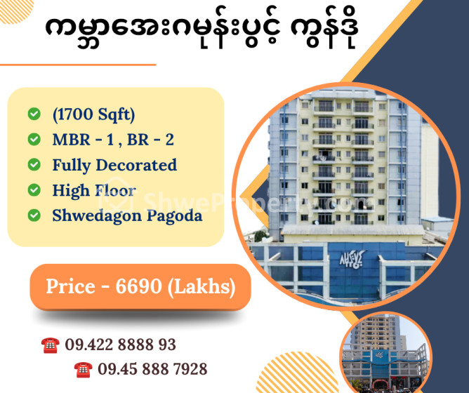 Property Name : မရမ်းကုန်းမြို့နယ် ၊ ကမ္ဘာအေးဂမုန်းပွင့်ကွန်ဒို ၊ (1700 Sqft) , For Sale