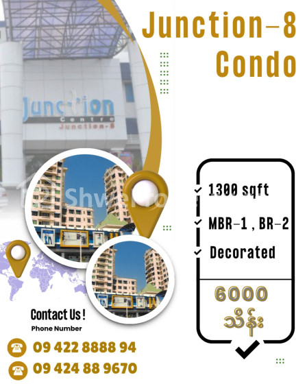Property Name : မရမ်းကုန်းမြို့နယ်၊Junction 8 Condo (1300Sqft)၊For Sale