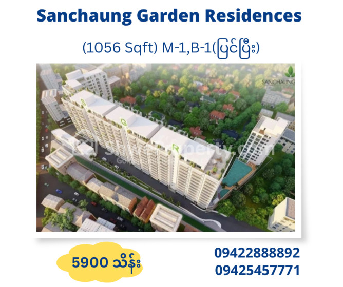 Property Name : စမ်းချောင်းမြို့နယ်၊Sanchaung Garden Residences (1056 Sqft)For Sale