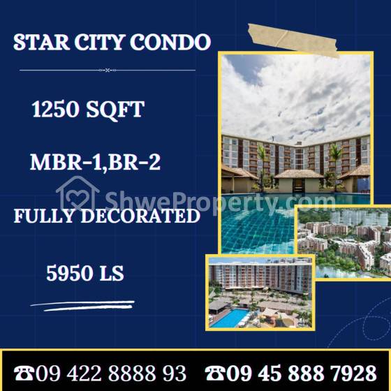 Property Name : Facilities အပြည့်အစုံ ပါဝင်ပြီး Compound ဝန်းထဲမှာ တည်ရှိတဲ့ (Star City Luxury Condo) မှ (3-Bedrooms) အခန်းရောင်းမည်