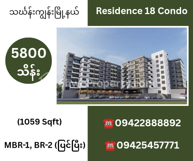 Property Name : သင်္ဃန်းကျွန်းမြို့နယ် ၊ Residence 18 (1059 Sqft)For Sale