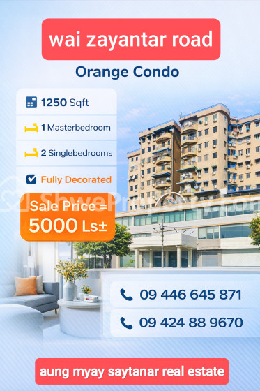 #ရန်ကုန်မြို့ရဲ့ သွားရေးလာရေးအဆင်ပြေဆုံး ဝေဇယန္တာလမ်းမကြီးပေါ် တည်ရှိတဲ့ Orange Condo အရောင်းခန်းတစ်ခန်းဖြစ်ပါတယ်။