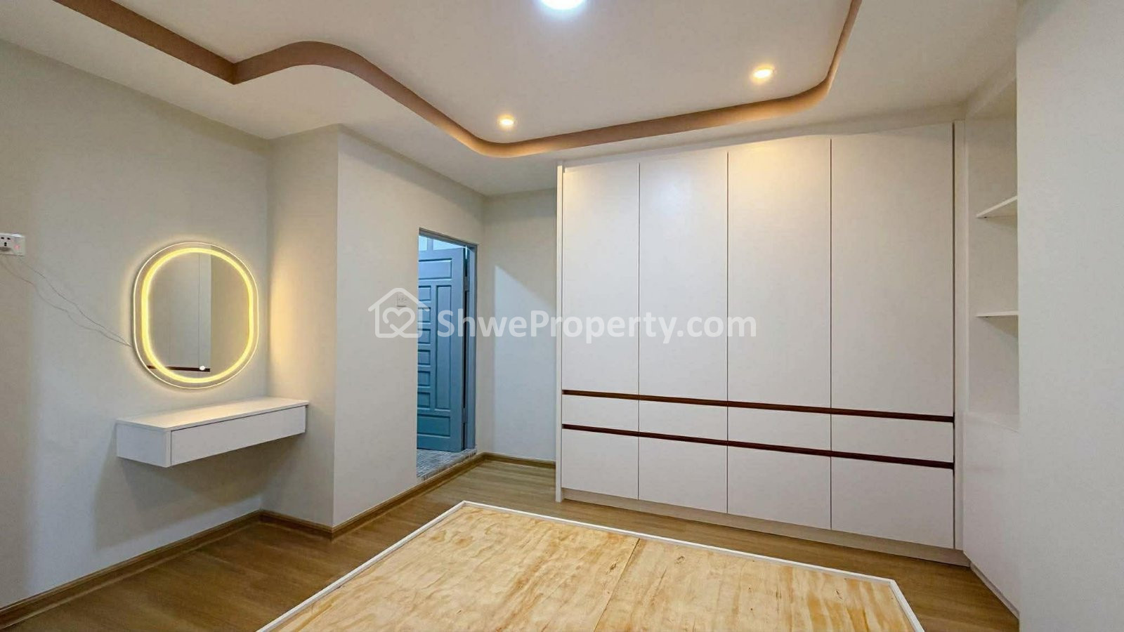 LED မှန်၊ မှန်တင်ခုံ၊ Built-in Wardrobe တလုံး၊ စာကြည့်စားပွဲ၊ ပစ္စည်းတင်စင် ပါဝင်ပါတယ်