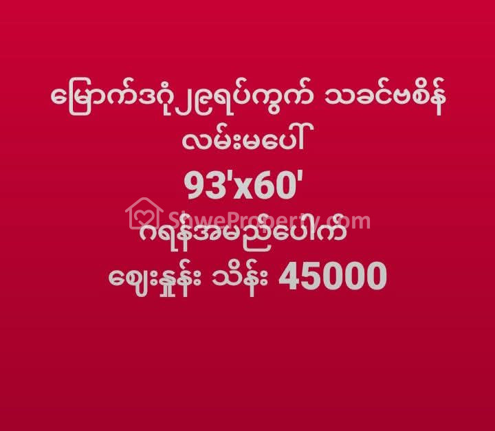 Property Name : မြောက်ဒဂုံ၂၉ရပ်ကွက်သခင်ဗစိန်လမ်းမပေါ်မြေကွက်ကျယ်ရောင်းမည်