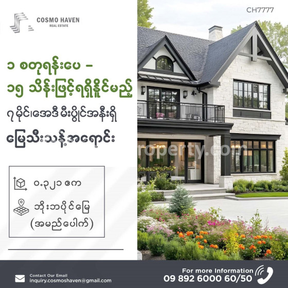 🔝High-End ဖြစ်သော နေရာတစ်ခုမှာ ခြံဝန်းကျယ်ကျယ်ဖြင့် Luxury ဆန်ဆန် 🏡လုံးချင်းတစ်လုံး တည်ဆောက်ပြီး နေထိုင်လို့ရသည့်အပြင် အနာဂါတ်အတွက် 👍ခိုင်မာသေချာသော ရင်းနှီးမြှုပ်နှံမှု ပြုလုပ်ရန်အတွက်လည်း အမှန်ကန်ဆုံး ရွေးချယ်မှု ဖြစ်စေနိုင်သောကြောင့် အမြန်လက်ဦးမှု ရယူဖို့ Cosmo Haven Real Estate သို့ ဆက်သွယ်လိုက်ပါရှင်🥰💯⚡✨✨✨☘✨✨✨✨