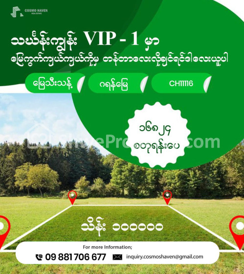 Property Name : သင်္ဃန်းကျွန်းVIP 1 ရှိ နေရာကောင်းမြေသီးသန့်အရောင်း/Land Only for Sales Thingangyun Township in Yangon/09892600050,09892600060