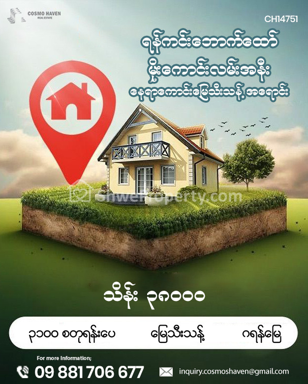 Property Name : ရန်ကင်းဘောက်ထော်မိုးကောင်းလမ်းအနီးရှိနေရာကောင်းမြေသီးသန့်အရောင်း/Land Only for Sales Yankin Township in Yangon/09892600050,09892600060