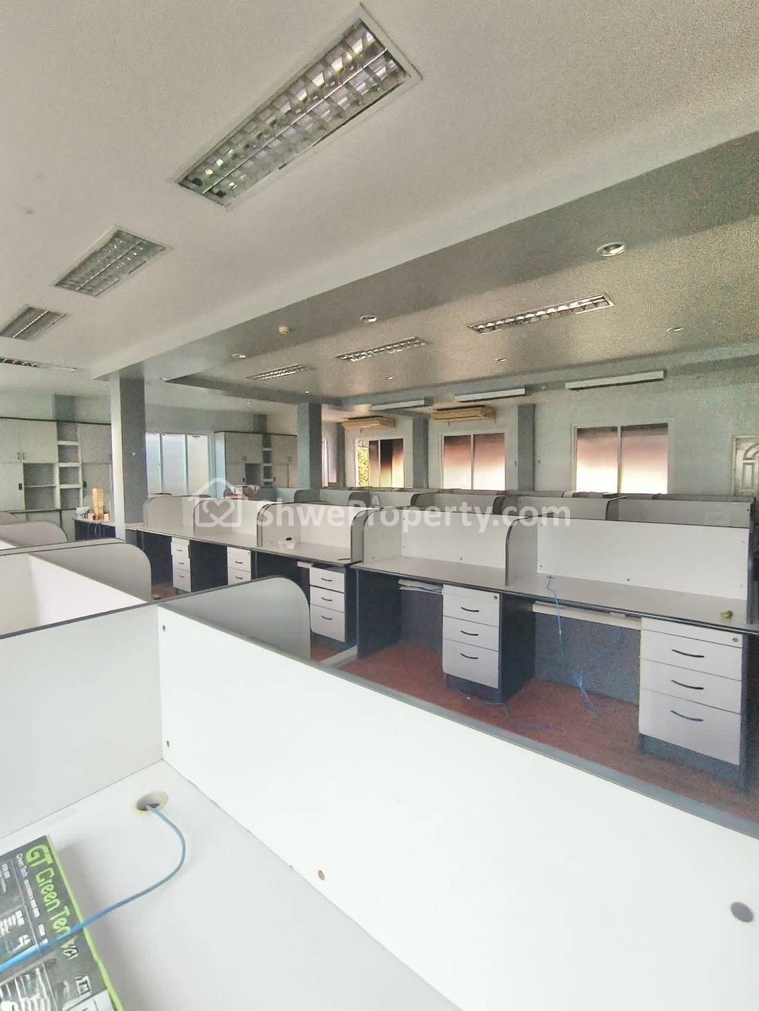 • မြေညီထပ်တွင် မန်နေဂျာသီးသန့်ရုံးခန်း ၃ ခန်း၊ အစည်းအဝေးခန်း ၁ ခန်း၊ ခန်းမကြီး (ဝန်ထမ်း ၂၅/၃၀ ဆန့်) ၁ ခန်း၊ Server Room အခန်းငယ် ၁ ခန်း ၊ သိုလှောင်ခန်း ၁ ခန်း ၊ အမျိုးသား/အမျိုးသမီး အိမ်သာများ