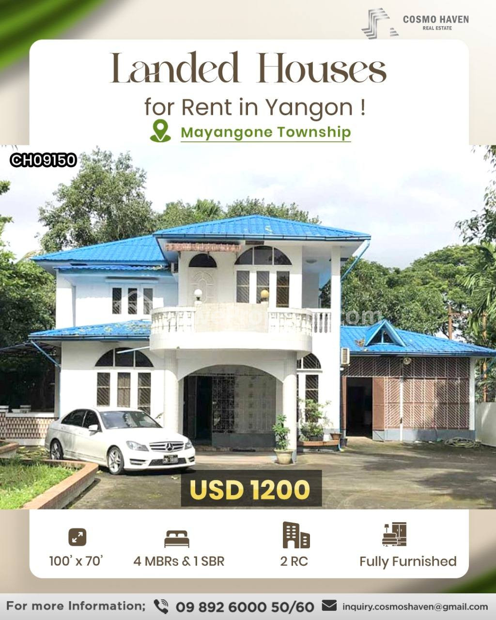 Property Name : ရန်ကုန်မြို့နယ်ရှိမြို့နယ်စုံနေရာကောင်းလုံးချင်းအိမ်ကောင်းအငှားများ/Landed House for Rent in Yangon