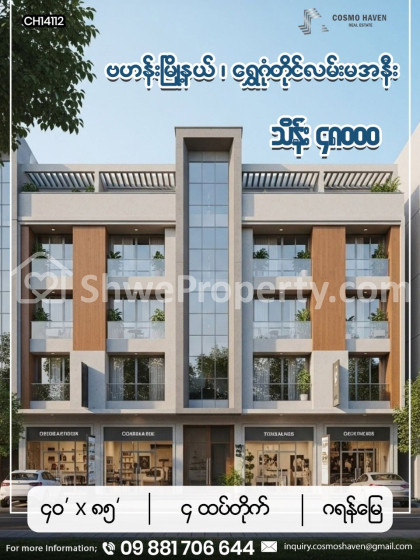 ရွှေတိဂုံဘုရားပါဖူးမြော်နိုင်မည့်🙏🙏 ရွှေဂုံတိုင်လမ်းမအနီး နေရာကောင်းမြေကွက်ကျယ် ၄ထပ်တိုက်အရောင်း🌿