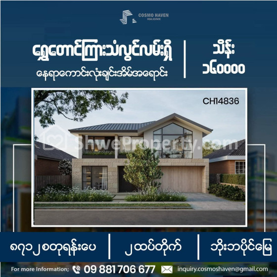#ရွှေတောင်ကြားသံလွင်လမ်းရှိနေရာကောင်းလုံးချင်းအိမ်အရောင်း