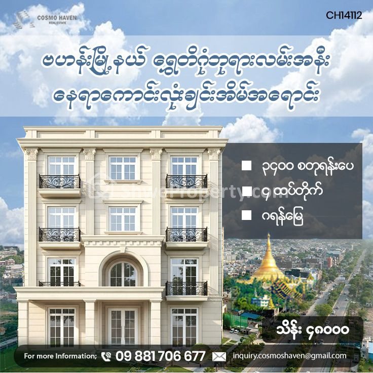 Property Name : ဗဟန်းမြို့နယ်ရွှေတိဂုံဘုရားအနီးနေရာကောင်းလုံးချင်းအိမ်အရောင်း/Landed House For Sales Bahan Township In Yangon/09892600050,09892600060