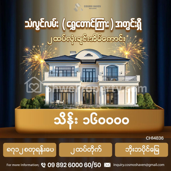 🌴🍃လူကြီးမင်းတို့အနေနဲ့ ရွှေတောင်ကြားအတွင်း စိတ်ငြိမ်အေးဆေးသောပတ်ဝန်းကျင်မှာ🏜️🏘️ ခြံကျယ်ကျယ်အိမ်ကောင်းကောင်းနှင့် အသင့်နေထိုင်နိုင်တဲ့ အိမ်ကြီးအိမ်ကောင်းလေးတစ်ခုကို ဉီးဉီးဖျားဖျား လက်ဝယ်ပိုင်ဆိုင်နိုင်ဖို့ ကျွန်တော််််တို့ Cosmo Haven Estate နဲ့အတူ အမြန်ဆုံး လိုက်လံကြည့်ရှုလိုက်တော့နော်🏛️💁📌