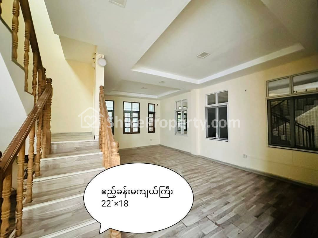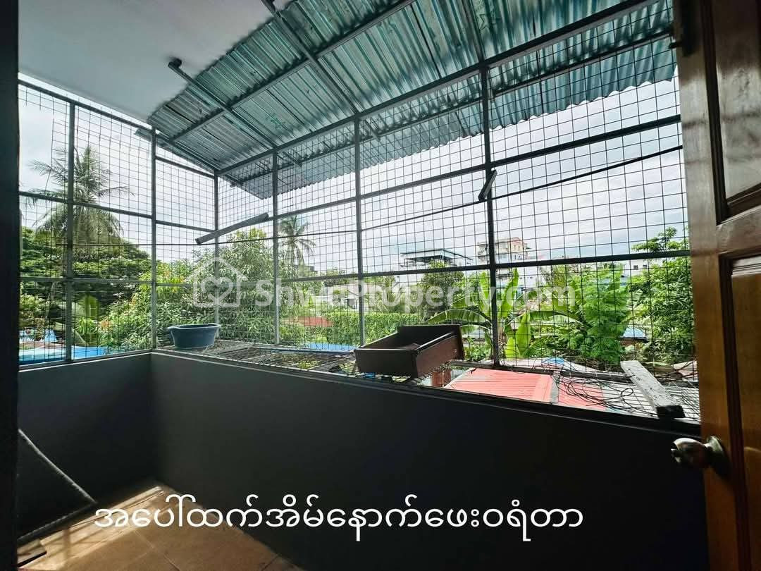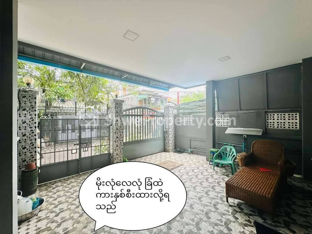 >ခြံထဲမှာကားပါကင်ထိုးလို့ရသည့်အပြင် အပေါ်ထပ်ဝရံတာအပါ ၁၈ပေx၆၀ပေ