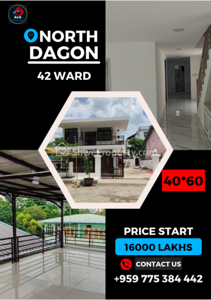 Property Name : မြောက်ဒဂုံမြို့ (၄၂) ရပ်ကွက်၊ ဗထူးလမ်းမကြီးကျောကပ်ပေါ်ရှိ ပေ(၄၀*၆၀) ကျယ်သော လုံးချင်းအိမ်ရောင်းရန်ရှိပါသည်။