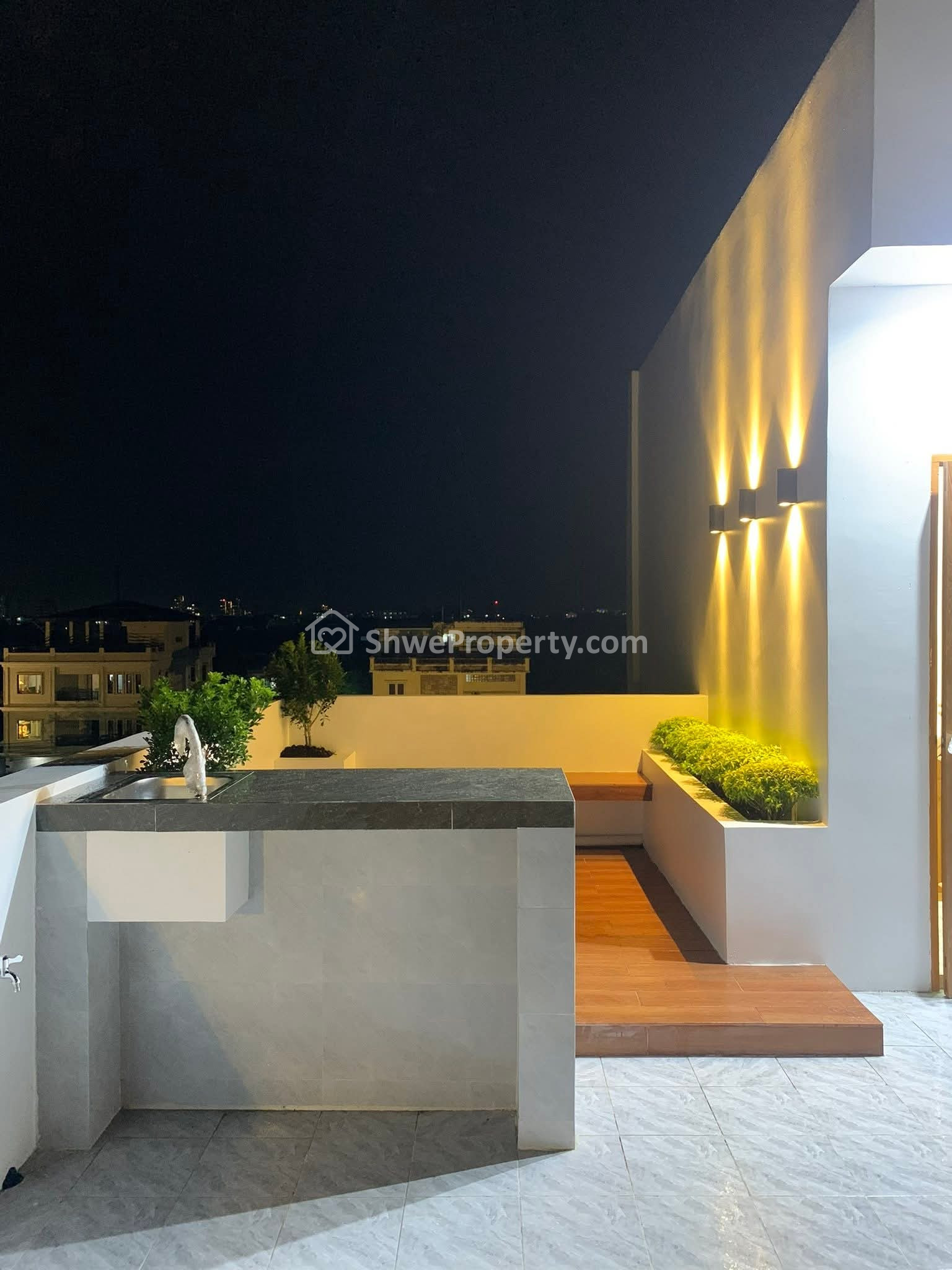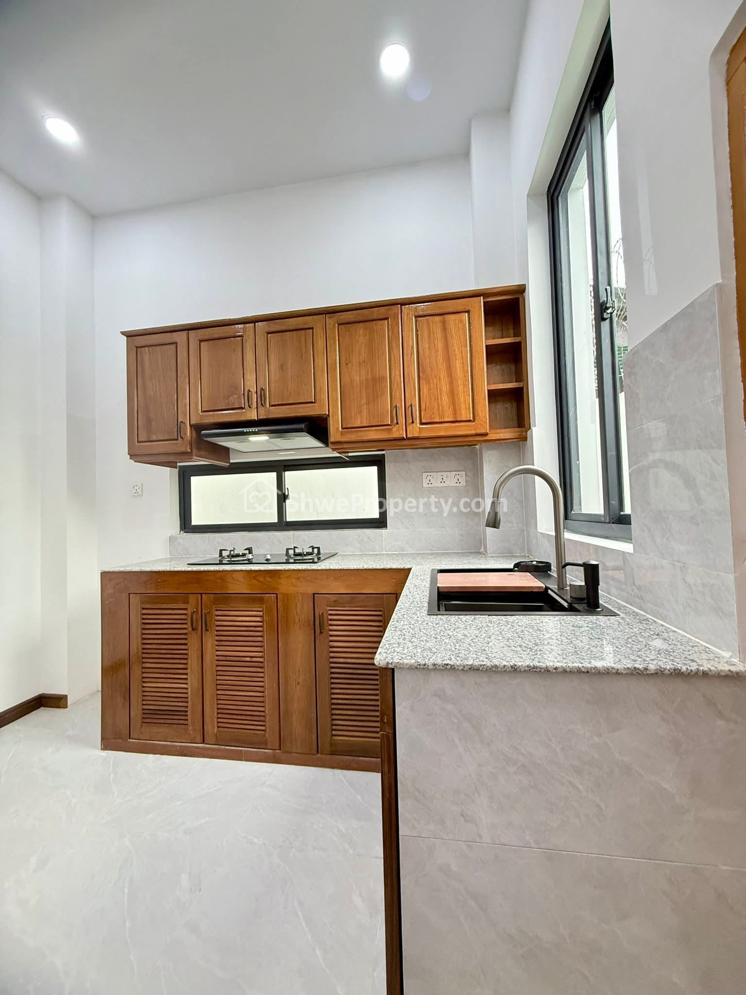 အရှေ့အရပ်လှည့်ဖြစ်ပြီး ဘုရင့်နောင်လမ်းမကျောကပ်အနီး တွင်ရှိသောပတ်ဝန်းကျင်သန့် Modern Houseလေးဖြစ်သည်