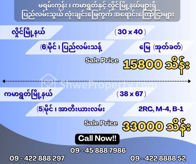 Property Name : မရမ်းကုန်း ၊ ကမာရွတ်နှင့် လှိုင်မြို့နယ်များရှိ “လုံးချင်း၊မြေကွက်”အရောင်းကြော်ငြာများ