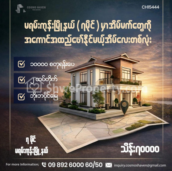 မိသားစုနဲ့အတူအေးအေးဆေးဆေးအနားယူနိုင်မယ့်မိသားစုအတွက်နားခိုရာနေရာ၊🏠 စိတ်အေးချမ်းစေမယ့်🏞ပတ်ဝန်းကျင်မှာ ကိုယ်ပိုင်အိမ်လေးဆိုတဲ့အဓိပ္ပါယ်က်ုပြန်လည်ခံစားနိုင်ဖို့ ဖန်တီးတည်ဆောက်ချင်တဲ့အိပ်မက်လေးတစ်ခုကို ပုံဖော်ဖို့ အခုပဲ ညီမတို့ Cosmo Haven Estate နဲ့အတူအကောင်ထည်ဖော်လိုက်စို့နော် ☀️