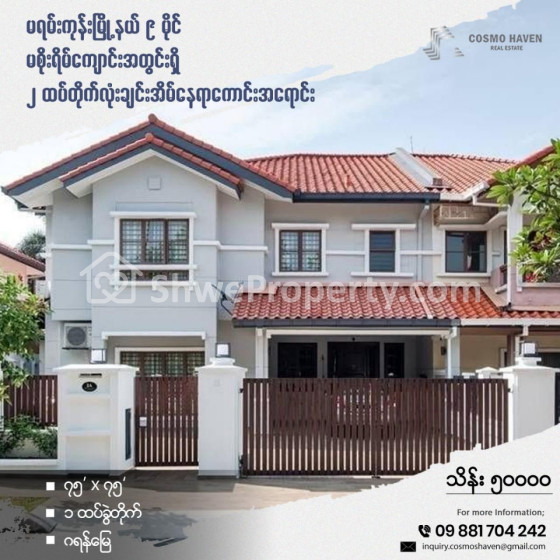 ၉မိုင် မစိုးရိမ်ကျောင်းလမ်း အတွင်းရှိ ၂ထပ်တိုက် လုံးချင်းအိမ်နေရာကောင်းအရောင်း