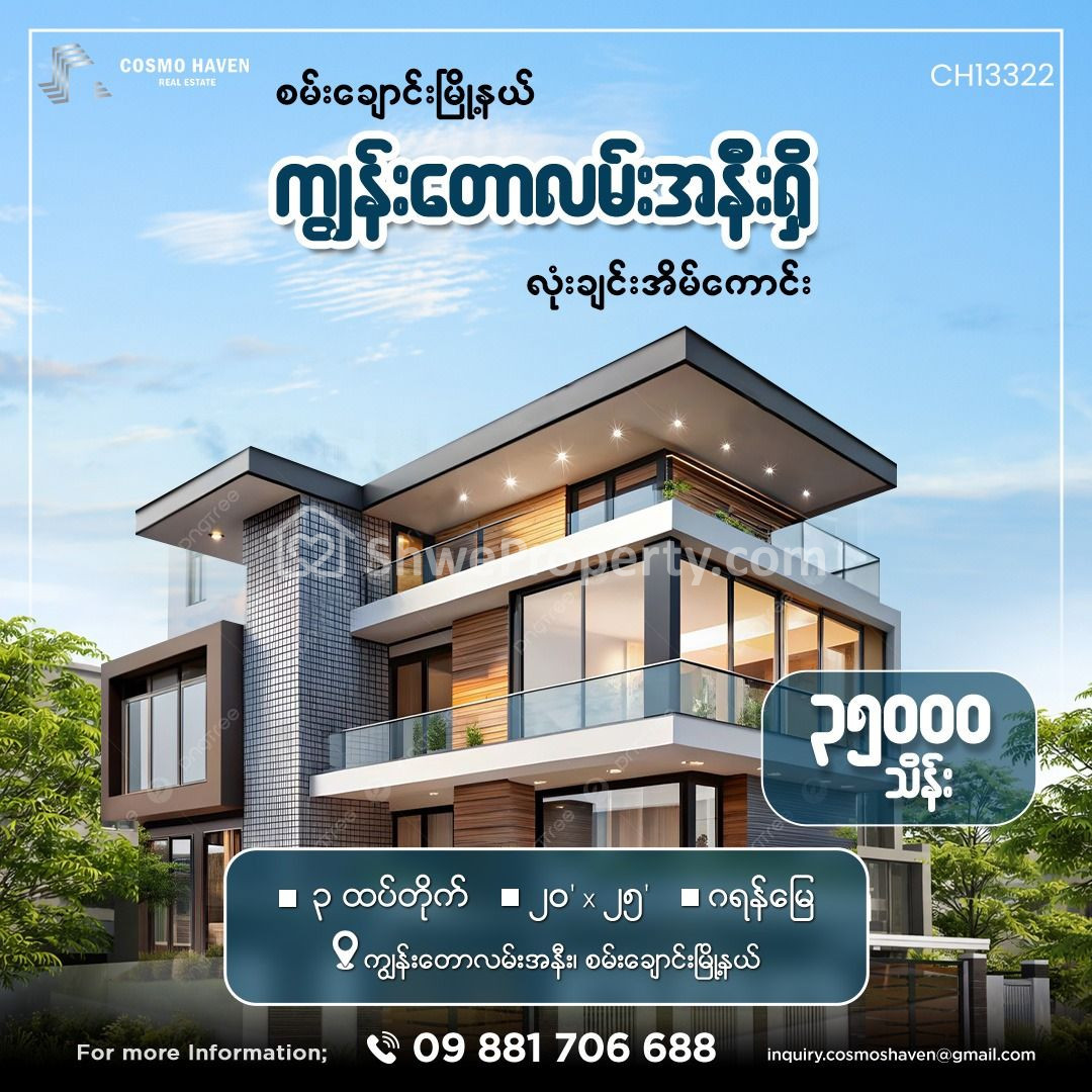 Property Name : စမ်းချောင်းမြို့နယ်ကျွန်းတောလမ်းအနီးရှိလုံးချင်းအိမ်ကောင်းအရောင်း/Landed House for Sales Sanchaung Township in Yangon/09892600050,09892600060
