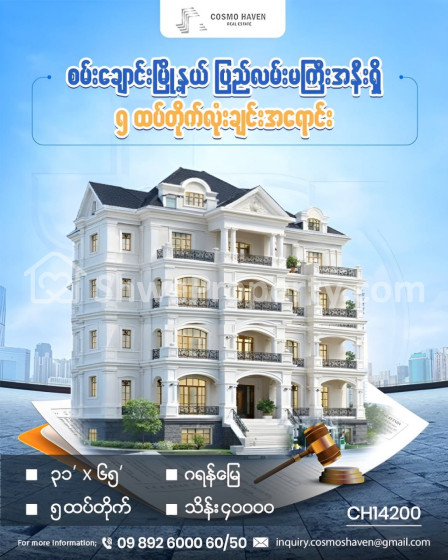 ✨️🎉ရန်ကုန်မြို့ရဲ့ လူစည်ကားပြီး လူနေမှုအဆင့်အတန်းမြင့်မားမှု နှင့် သွားလာရေးလွယ်ကူမှုတို့ကြောင့် အမြဲတမ်းတန်ဖိုးမြင့်တက်နေသော စမ်းချောင်းမြို့နယ် စမ်းချောင်းလမ်းအနီးရှိ ( ၅ )ထပ်တိုက် လုံးချင်းအရောင်းလေးကို အထူးစျေးနှုန်းဖြင့်ရောင်းချလိုက်ပါပြီရှင့်✨️✨️