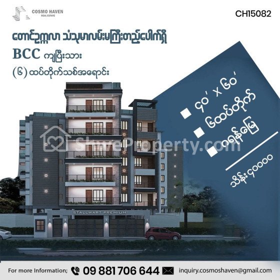 Property Name : သံသုမာလမ်းမကြီးတည့်ပေါက်ရှိ BCCကျပြီးသား (၆)ထပ်တိုက်သစ်အရောင်း/Landed House For Sales South Okkalapa Township In Yangon/09892600050,09892600060