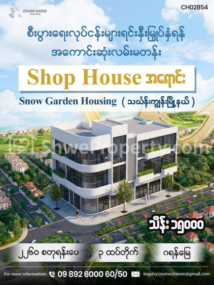 🧾🏢Companies and Head Office များဖွင့်လှစ်ထားပြီးလူစည်ကားတဲ့ (Snow Garden) အိမ်ရာ၀န်းမှာမှလမ်းမတန်းပေါ်ကနေရာကောင်း (Shop House) ဖြစ်တာကြောင့်လူကြီးမင်းတို့စီးပွားရေးလုပ်ငန်းများအမြန်ဆုံးအဆင့်မြှင့်တိုးချဲဖို့ရန်အတွက်ကျွန်တော်တို့ Cosmo Haven Estate ကိုအမြန်ဆုံးဆက်သွယ်၀ယ်ယူလိုက်ပါတော့ခင်ဗျာ 💵💵💵