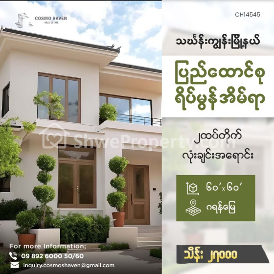 🏡အကျယ်အဝန်း - ၆၀' ၆၀'