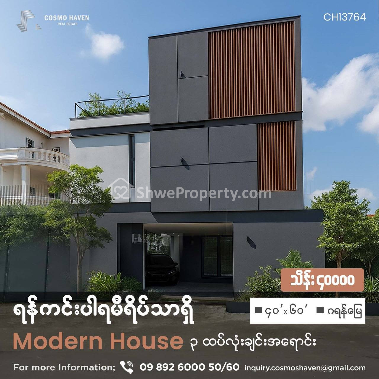 Property Name : ပါရမီရိပ်သာလမ်းModern House ၃ထပ်တိုက်လုံးချင်းအိမ်အရောင်း/Modern House For Sales Yankin Township In Yangon